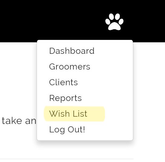 We've recently added a new feature to Groomy called the "Wish List". You can find it in your Paw Menu.